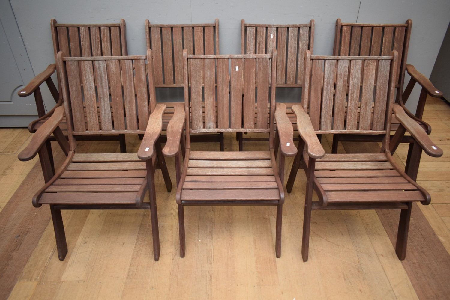 SEVEN AUSTRALIAN MADE JARRAH OUTDOOR ARMCHAIRS (91H X 61W X 69D CM) (LEONARD JOEL DELIVERY SIZE: LARGE)