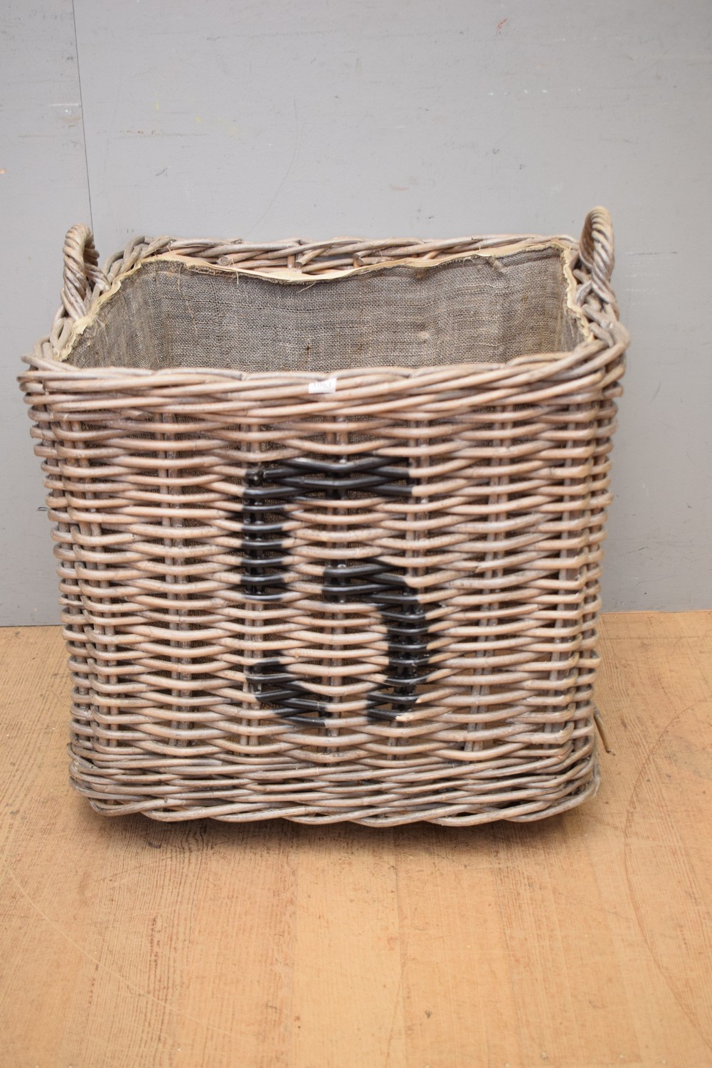 A VINTAGE LARGE CANE INDUSTRIAL BASKET ON CASTORS (66H X 63W X 64D CM) (LEONARD JOEL DELIVERY SIZE: MEDIUM)