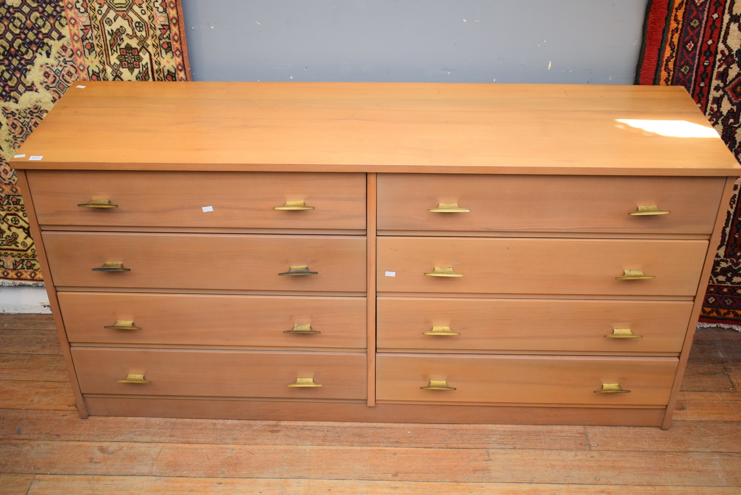 A MID-CENTURY EIGHT DRAWER CABINET (76H X 152W X 44D CM) (PLEASE NOTE THIS HEAVY ITEM MUST BE REMOVED BY CARRIERS AT THE CUSTOMER'S EXPENSE. LEONARD JOEL STAFF CANNOT ASSIST CARRYING THIS ITEM) (X-LARGE ITEM)