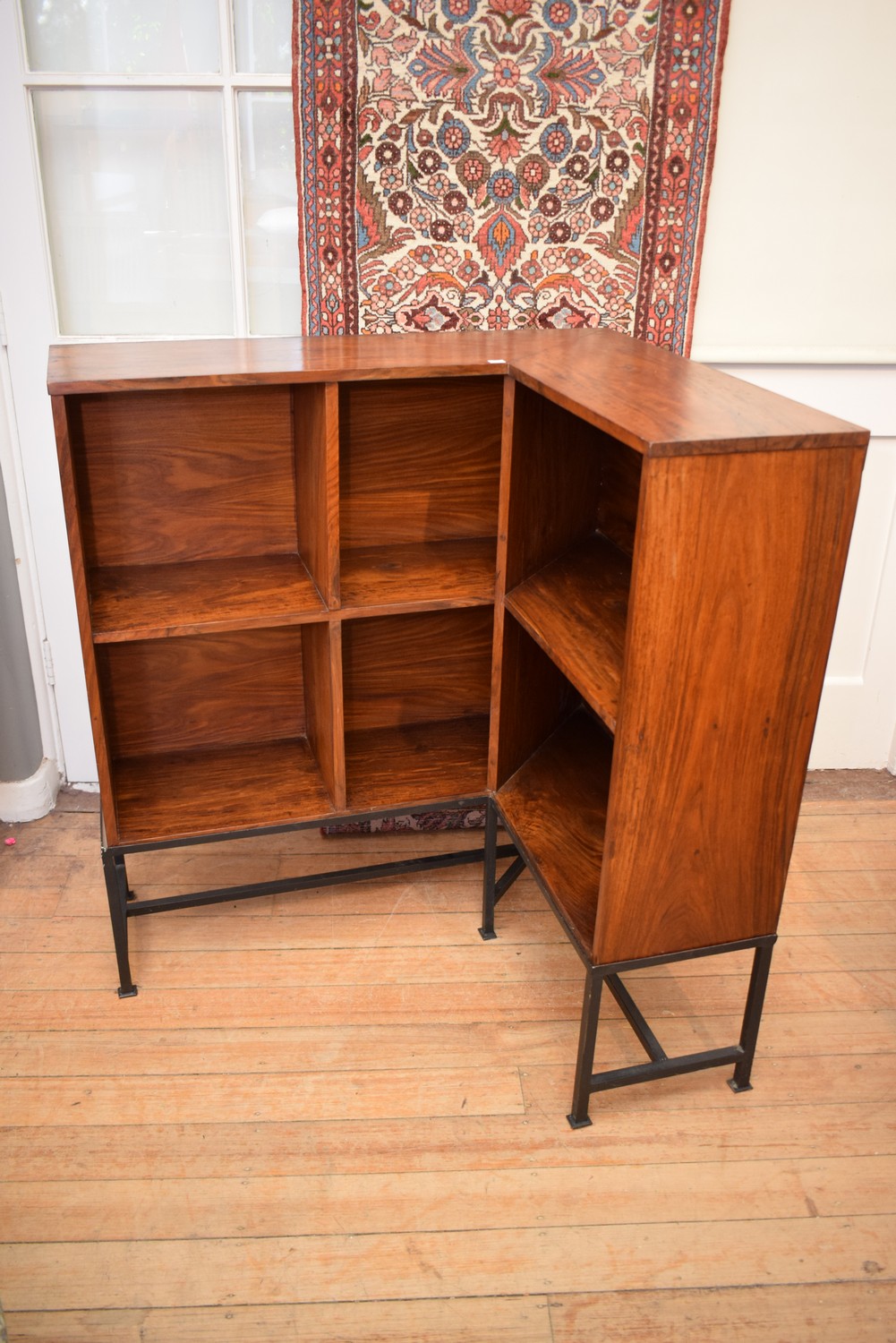 A MID-CENTURY CORNER CABINET (113H x 101W x 83D CM) (PLEASE NOTE THIS HEAVY ITEM MUST BE REMOVED BY CARRIERS AT THE CUSTOMER'S EXPENSE. LEONARD JOEL STAFF CANNOT ASSIST CARRYING THIS ITEM) (X-LARGE ITEM)