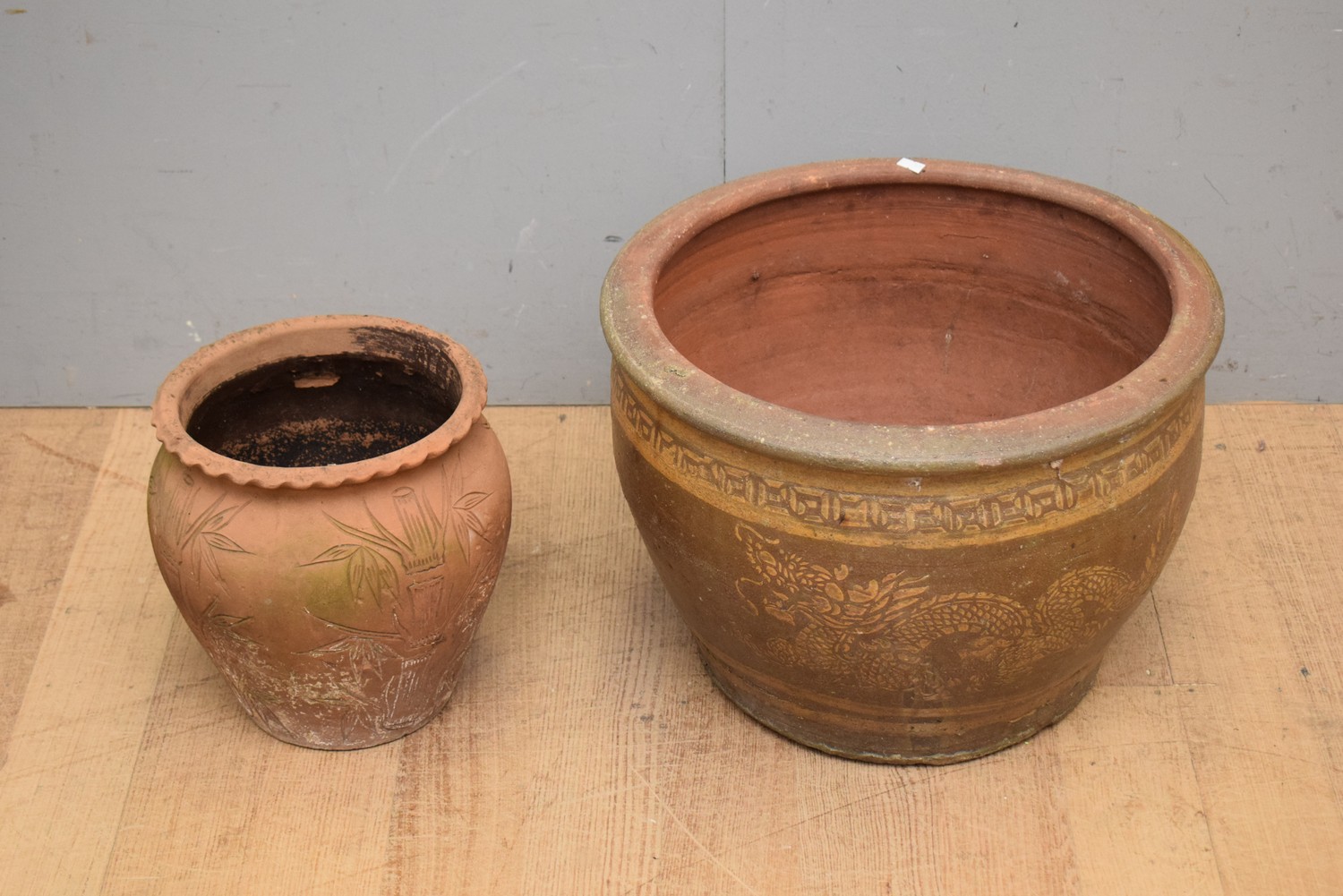 TWO DECORATIVE GARDEN POTS (36H x 51D CM) (LEONARD JOEL DELIVERY SIZE: LARGE)