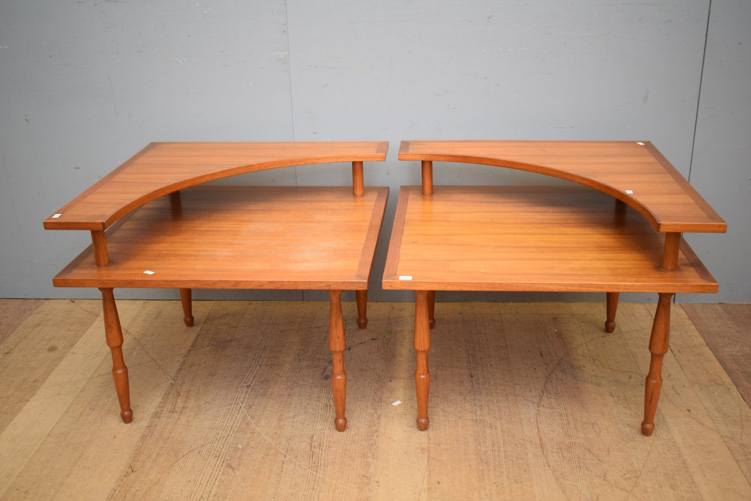A PAIR OF MID-CENTURY SIDE TABLES (A/F) (52H X 56W X 55D CM)(LEONARD JOEL DELIVERY SIZE: MEDIUM)