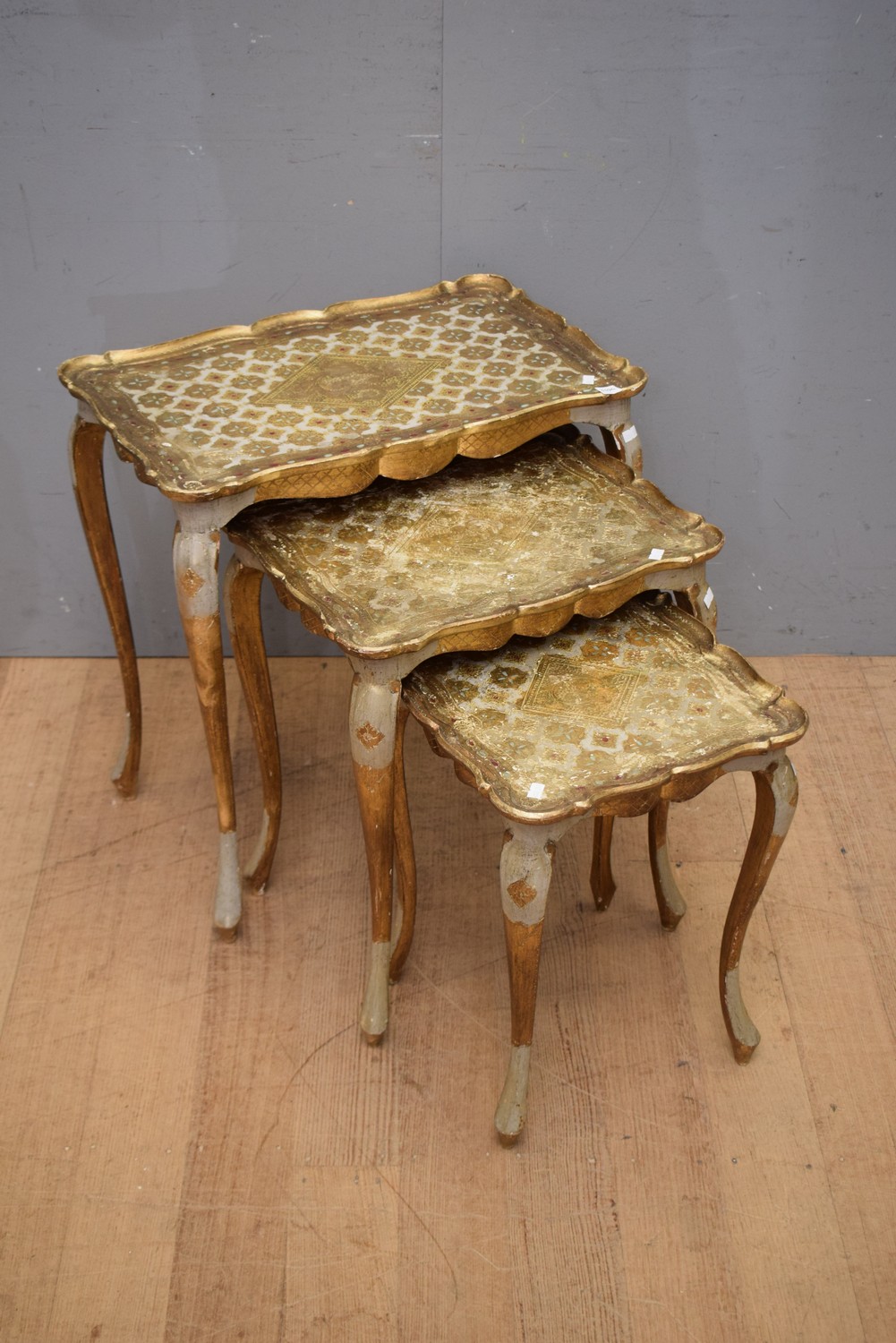 A FINE NEST OF THREE FLORENTINE ITALIAN GILTWOOD TABLES (59H X 57W X 37D CM) (LEONARD JOEL DELIVERY SIZE: MEDIUM)