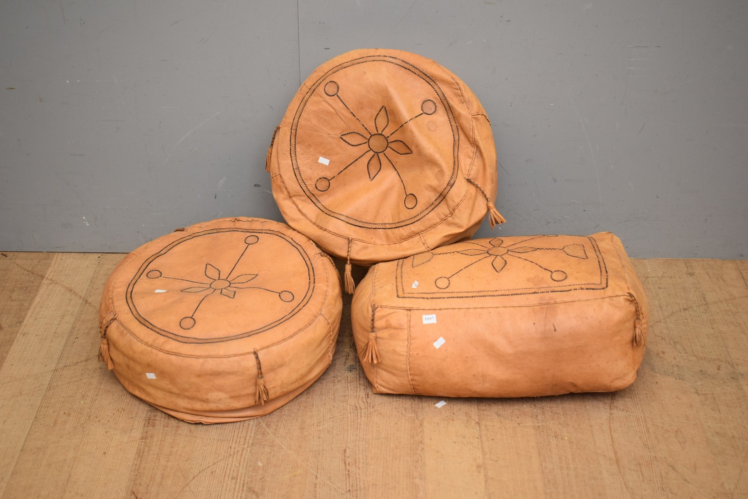 A GROUP OF THREE 1960S LEATHER OTTOMANS WITH NORTH AMERICAN DESIGN (26H X 57W X 37D CM) (LEONARD JOEL DELIVERY SIZE: MEDIUM)