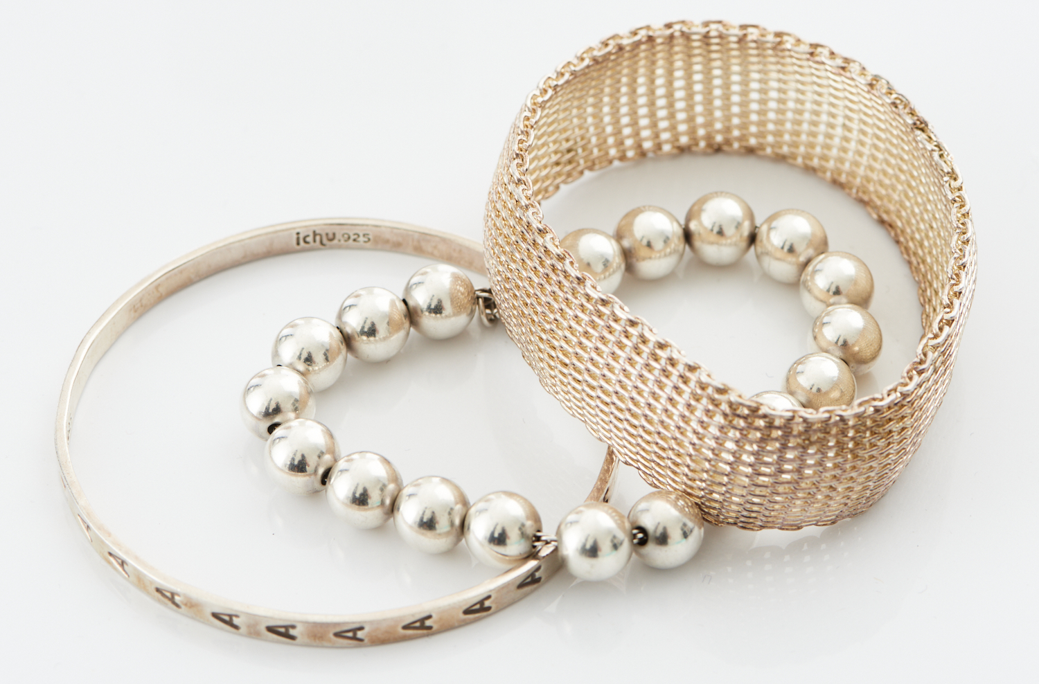 TWO TIFFANY & CO BRACELET IN STERLING SILVER, WITH BOX AND/OR POUCH, TOGETHER WITH A STERLING SILVER BANGLE BY ICHU