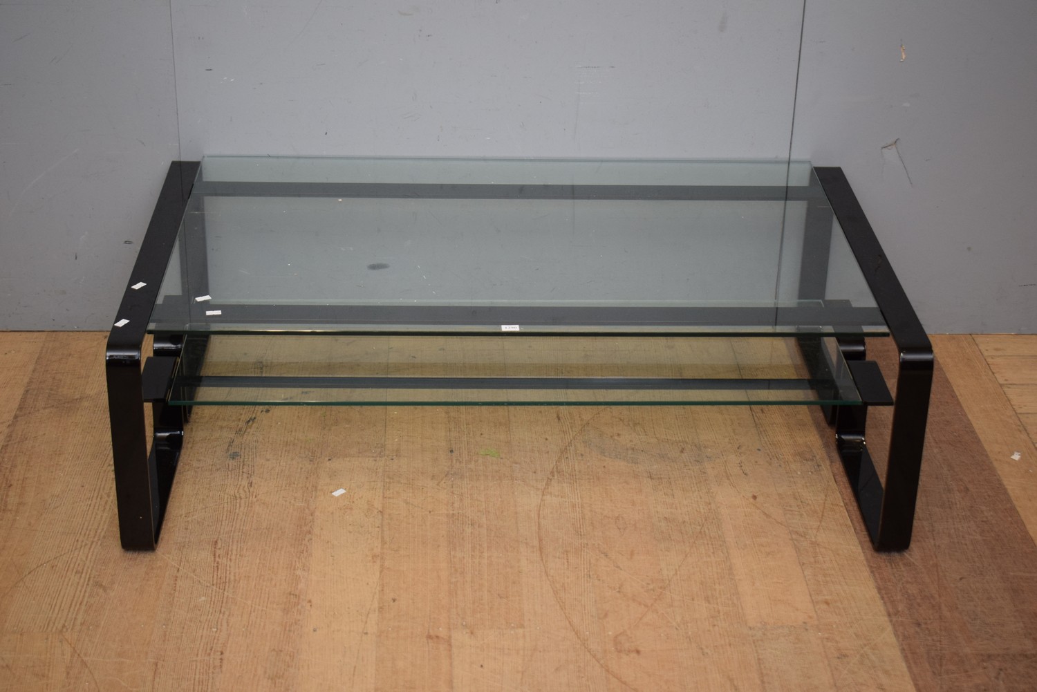 AN ITALIAN BLACK FRAMED GLASS COFFEE TABLE WITH SHELF (36H X 120W X 76D CM) (PLEASE NOTE THIS HEAVY ITEM MUST BE REMOVED BY CARRIERS AT THE CUSTOMER'S EXPENSE. LEONARD JOEL STAFF CANNOT ASSIST CARRYING THIS ITEM) (X-LARGE ITEM)