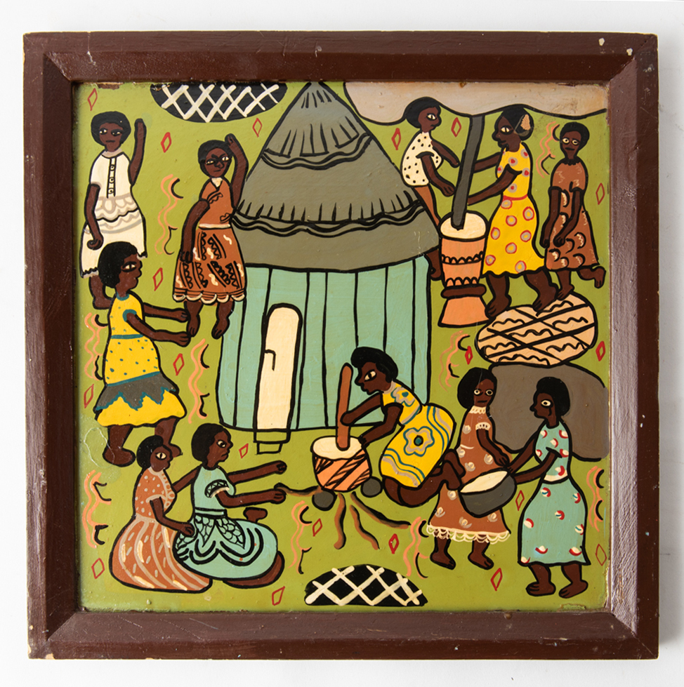 AN AFRICAN FOLK ART PAINTING FROM ZIMBABWE (33 X 33 CM), LEONARD JOEL LOCAL DELIVERY SIZE: SMALL
