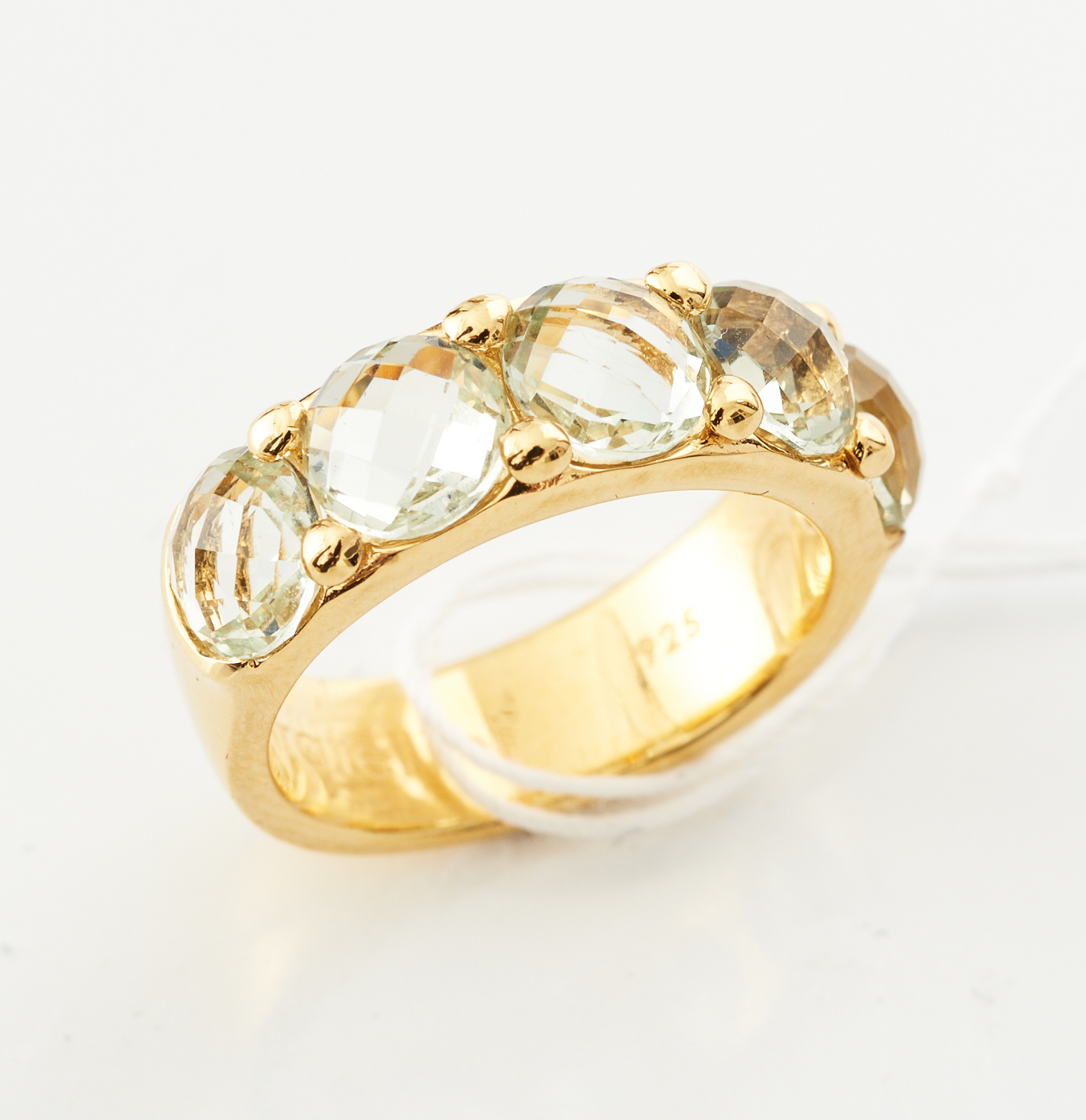 A QUARTZ DRESS RING IN SILVER GILT, SIZE M