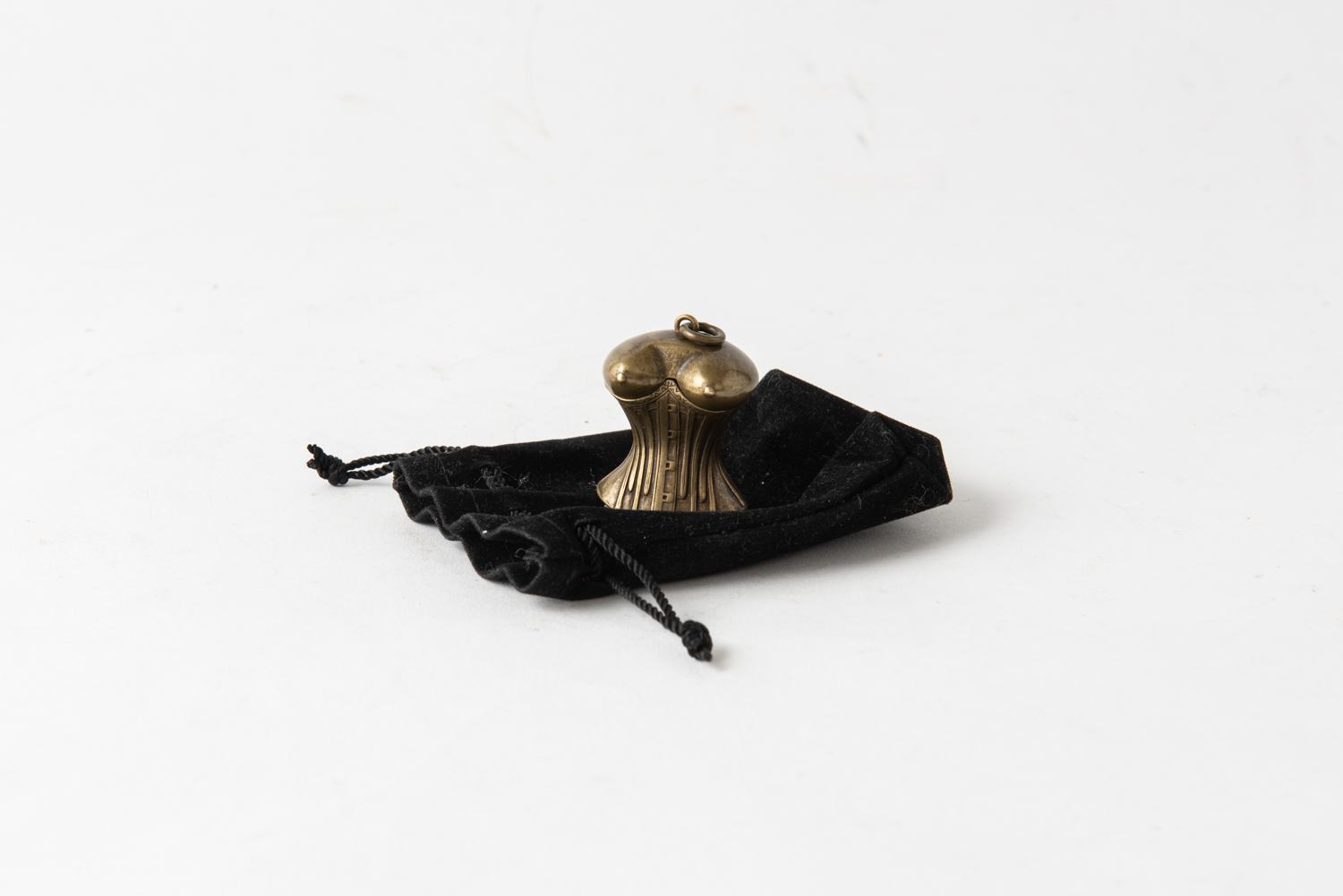 A C 1895 COMPOSITE METAL VESTA, HINGED, IN THE FORM OF A WOMAN'S BODICE, LEONARD JOEL LOCAL DELIVERY SIZE: SMALL