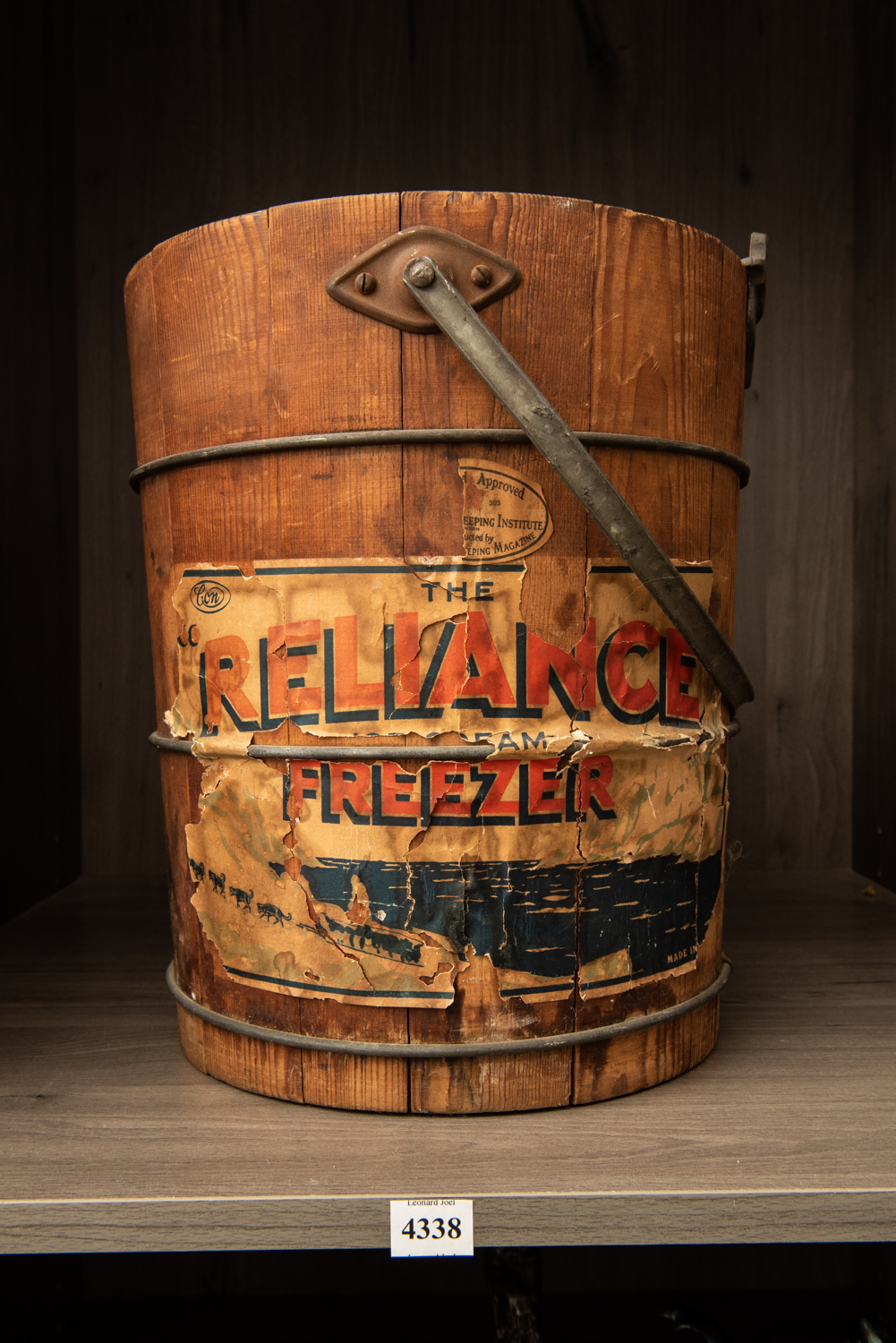 A TIMBER BUCKET 'RELIANCE FREEZER', H.32CM, LEONARD JOEL LOCAL DELIVERY SIZE: SMALL