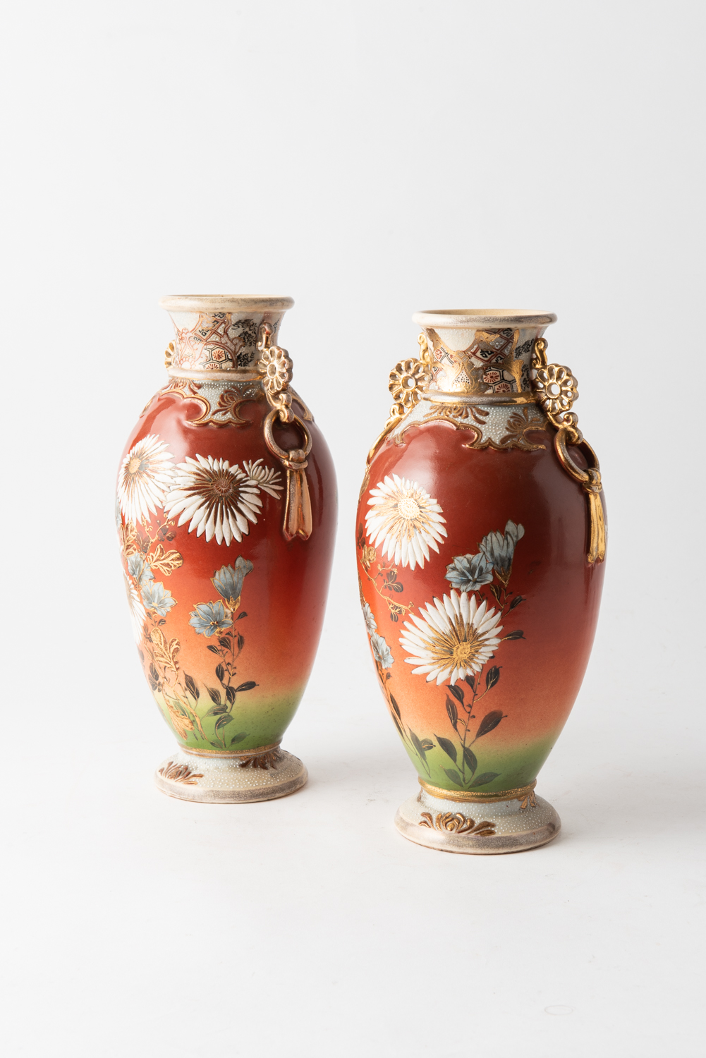 A PAIR OF JAPANESE KYOTO SATSUMA VASES, MEIJI PERIOD, 31.5 CM HIGH, LEONARD JOEL LOCAL DELIVERY SIZE: SMALL