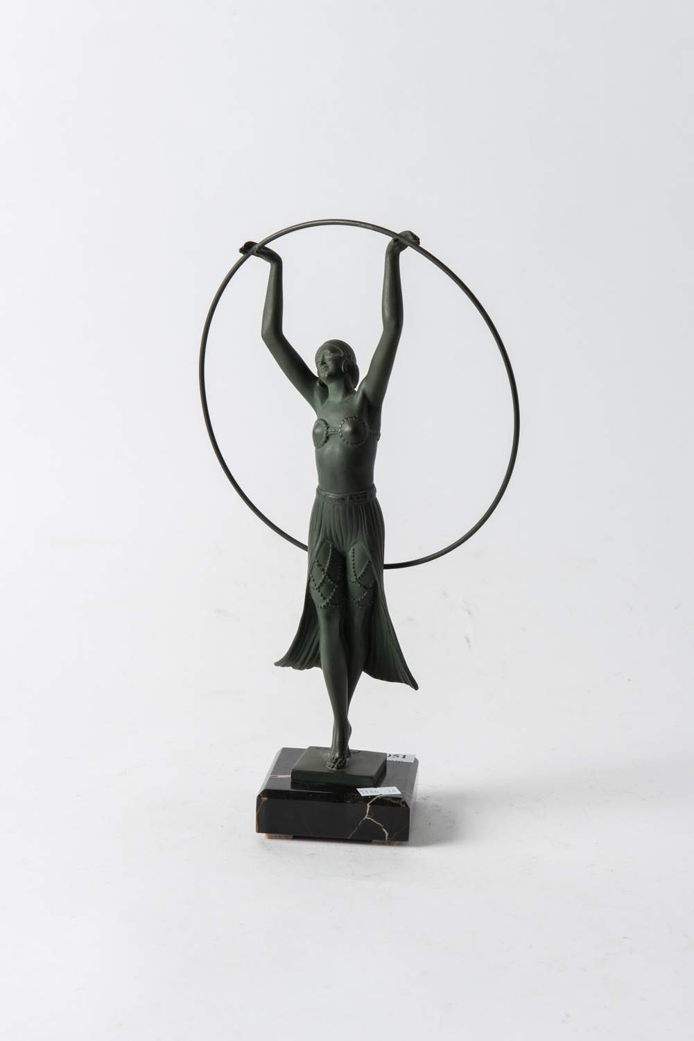 A SPELTER FIGURE OF A DANCER, SIGNED CHARLES, H.33CM, LEONARD JOEL LOCAL DELIVERY SIZE: SMALL