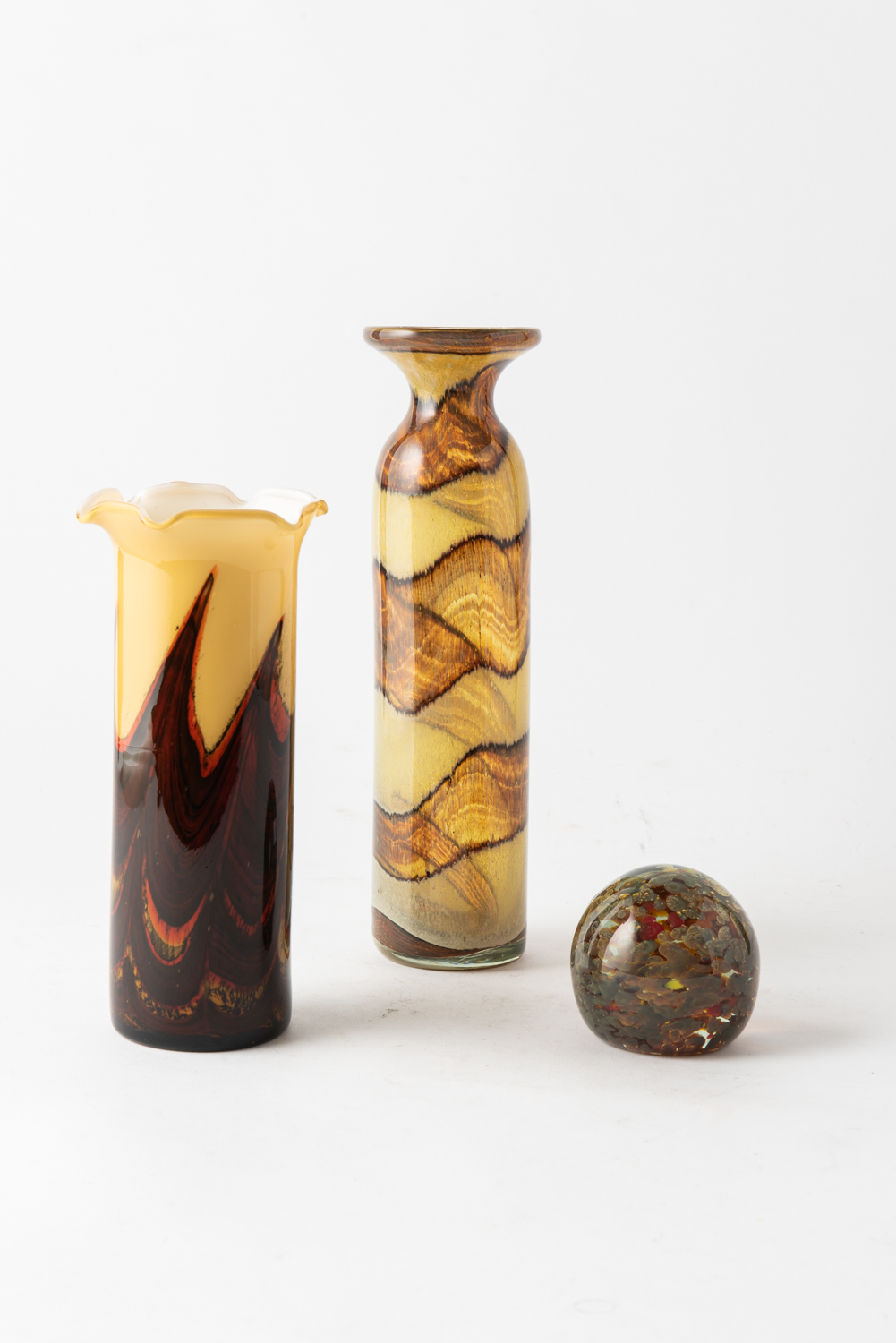 A MDINA VASE AND PAPERWEIGHT AND ANOTHER, THE TALLEST 30.5 CM HIGH, LEONARD JOEL LOCAL DELIVERY SIZE: SMALL