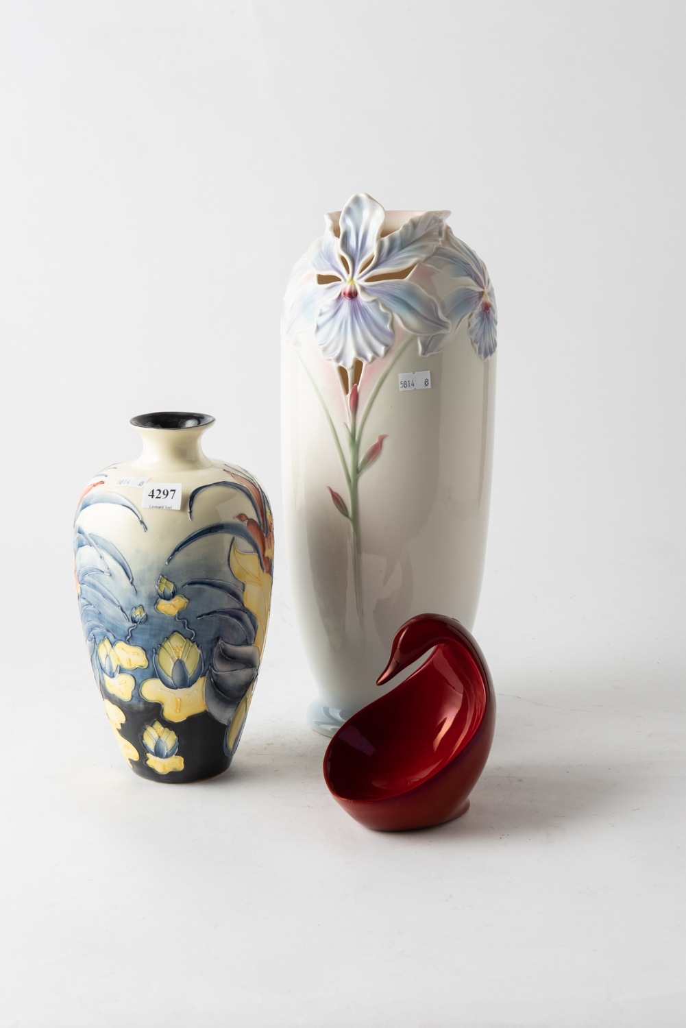 A LARGE FRANZ FLORAL VASE AND OTHER PLUS ZSOLNAY CERAMIC SWAN/BOWL, LEONARD JOEL LOCAL DELIVERY SIZE: SMALL