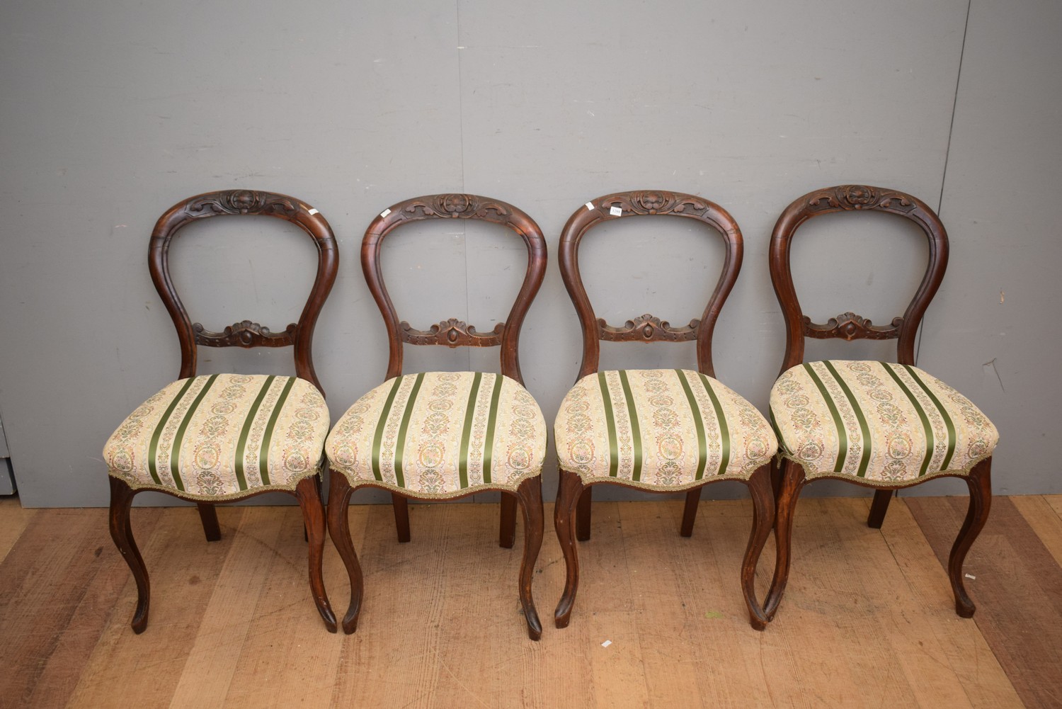 A SET OF FOUR CARVED BALLOON BACK DINING CHAIRS (A/F) (85H X 47W X 55D CM) (LEONARD JOEL DELIVERY SIZE: LARGE)