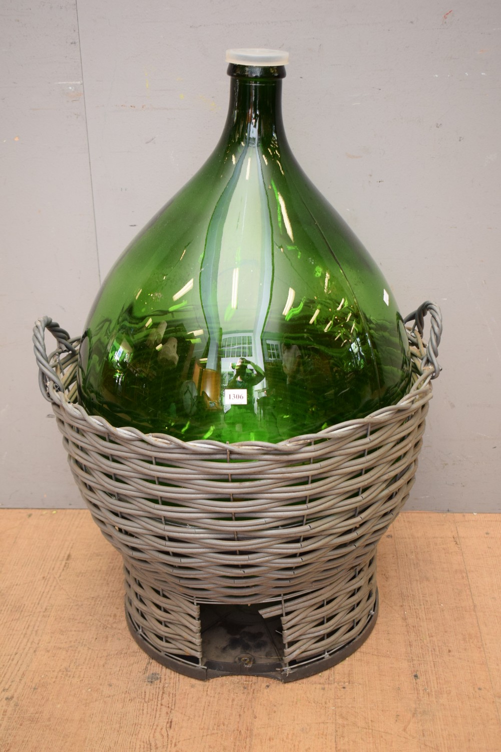 A LARGE GREEN GLASS DEMIJOHN (83H X 60D CM) (LEONARD JOEL DELIVERY SIZE: MEDIUM)