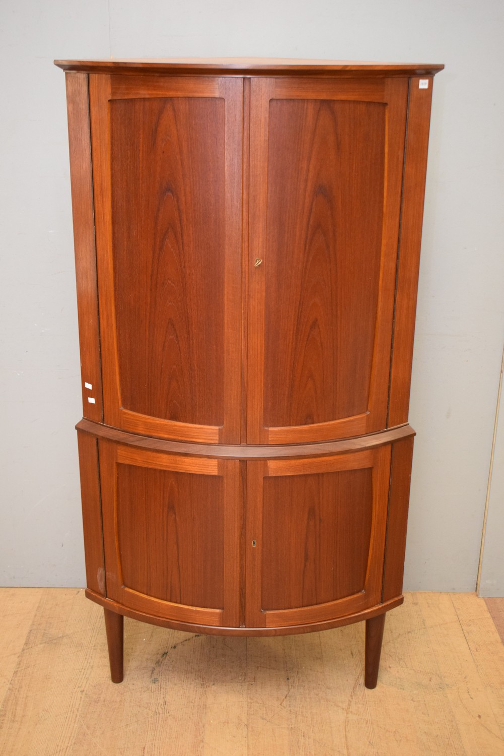 A DANISH TEAK FOUR DOOR CORNER CABINET (A/F DAMAGE TO VENEER) (160H X 83W X 58D CM) (LEONARD JOEL DELIVERY SIZE: LARGE)