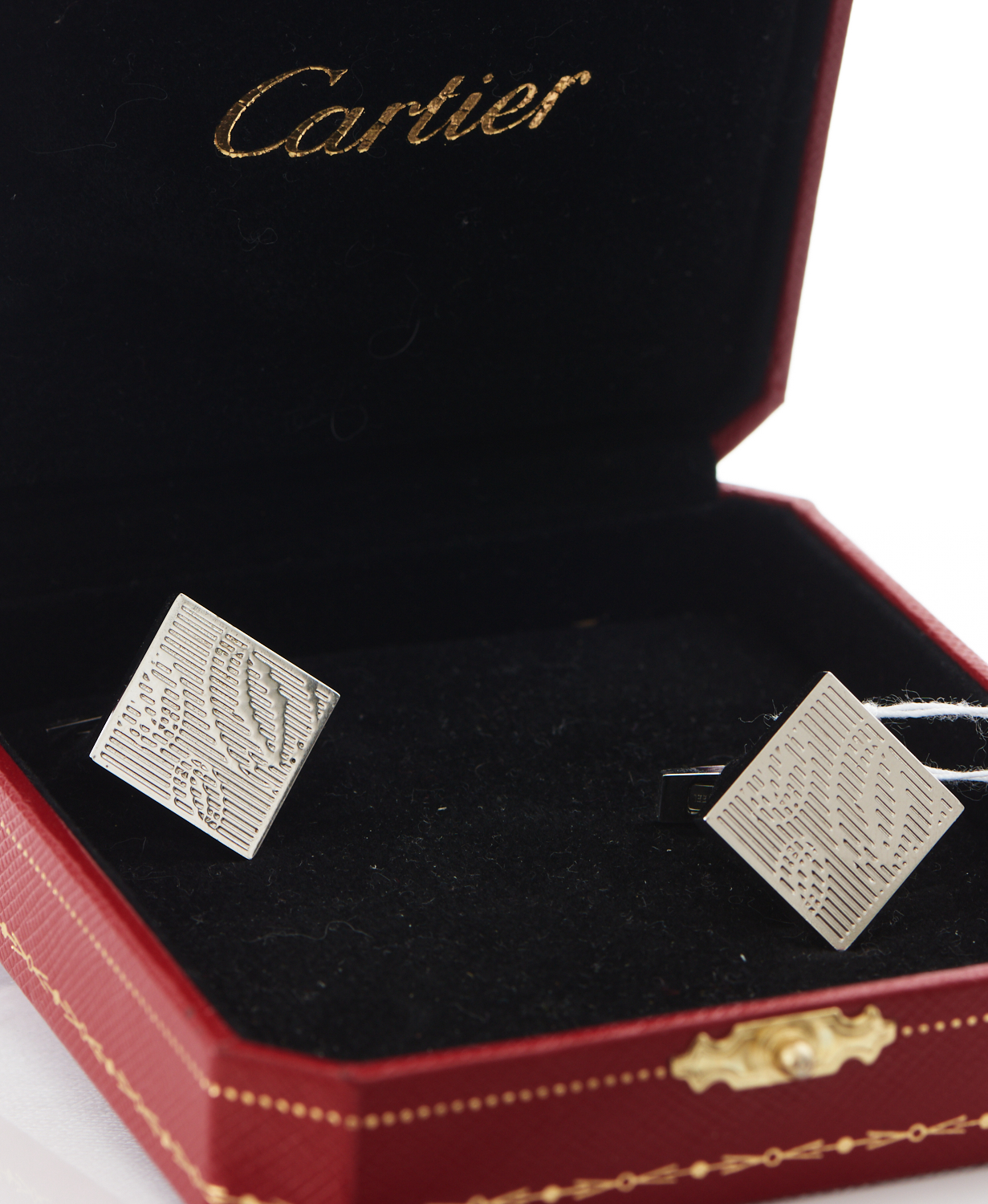 A PAIR OF CUFFLINKS IN STERLING SILVER BY CARTIER, BOXED
