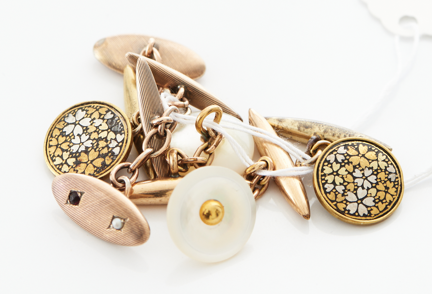 THREE PAIRS OF VINTAGE CUFFLINKS, GOLD LINED