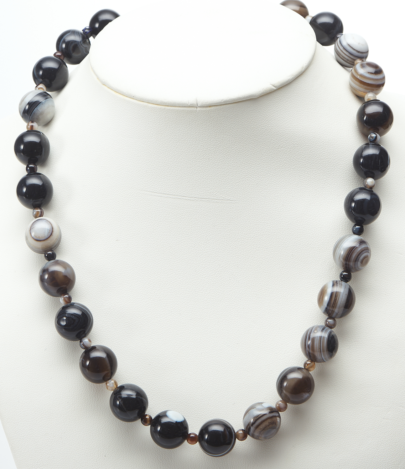 A STRAND OF BANDED AGATE BEADS, 51CMS