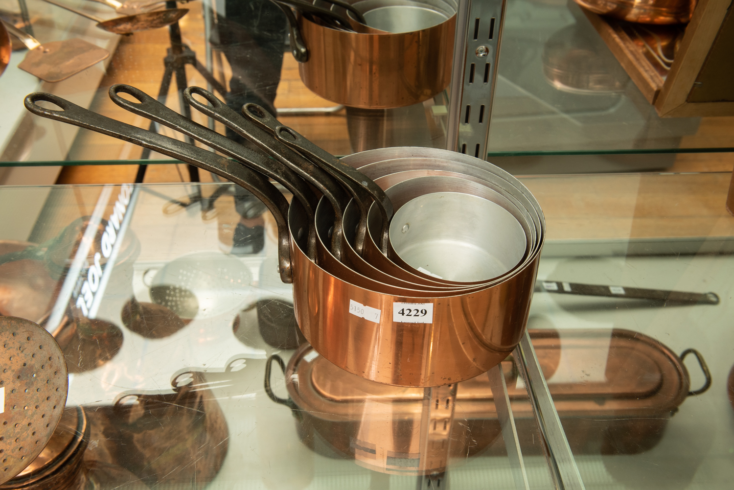A SET OF FIVE FRENCH COPPER POTS 'TOURNUS', LEONARD JOEL LOCAL DELIVERY SIZE: SMALL