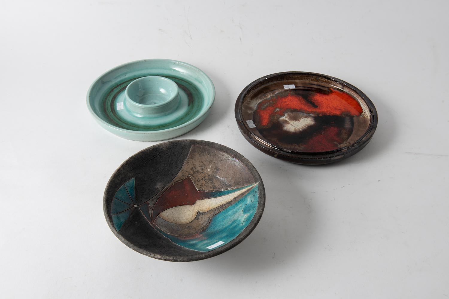 THREE AUSTRALIAN POTTERY ITEMS INCLUDING TRUDY FRY, ALLAN LOW AND OTHER, LEONARD JOEL LOCAL DELIVERY SIZE: SMALL
