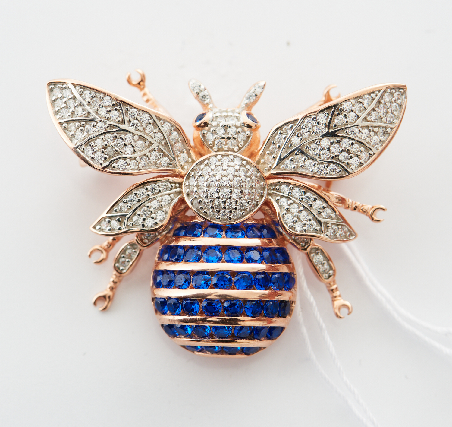 A BEE BROOCH COMPRISING PASTE AND CUBIC ZIRCONIA, IN SILVER GILT, 35X30MM