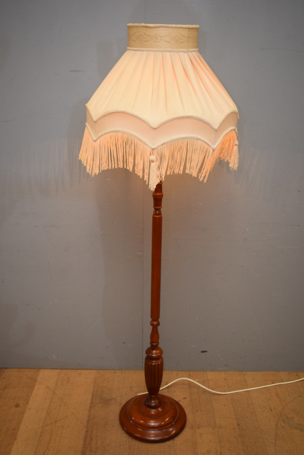 A TIMBER STANDARD LAMP WITH SHADE (183 CM H) (LEONARD JOEL DELIVERY SIZE: MEDIUM)