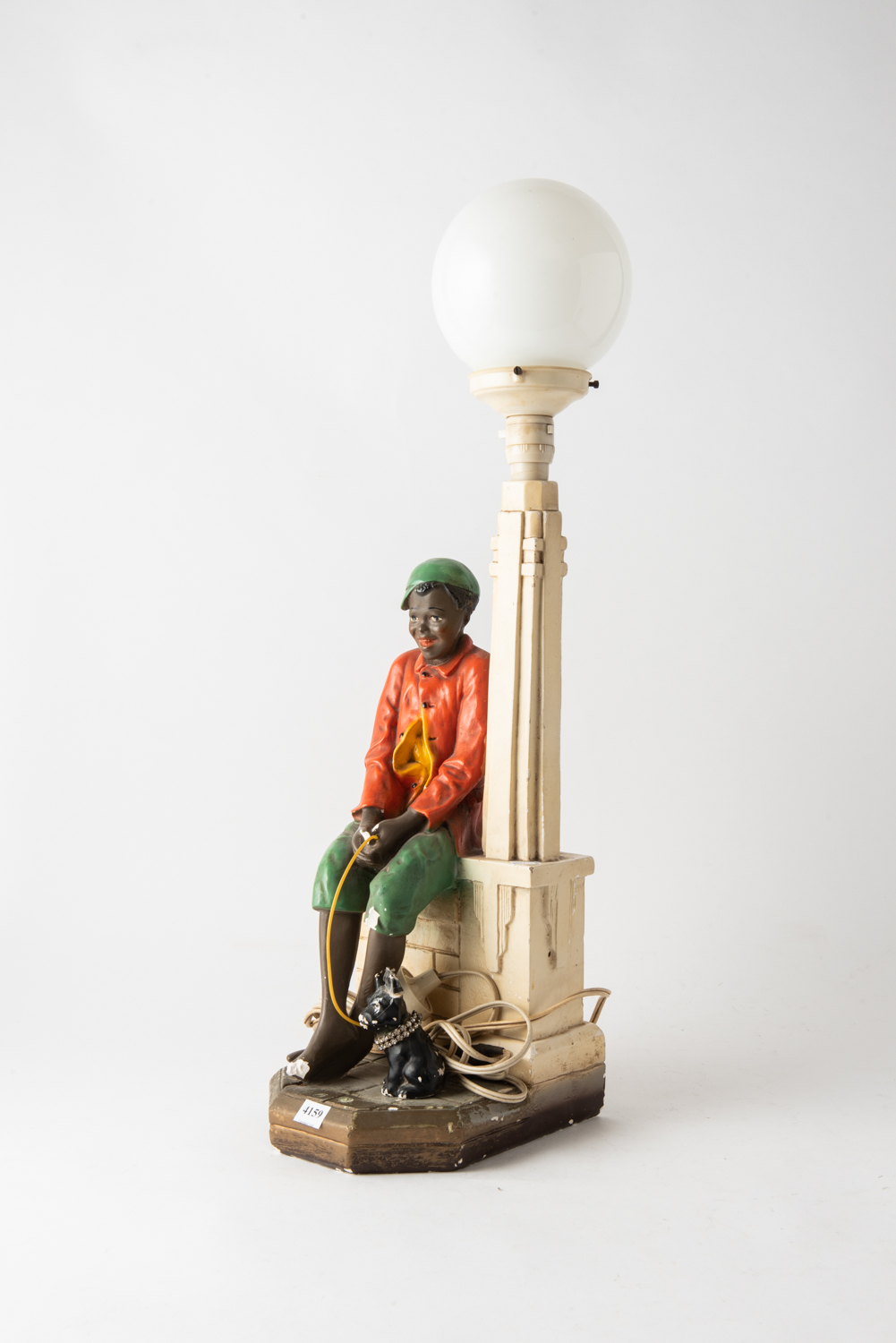 AN EARLY 20TH CENTURY CHALKWARE FIGURAL LAMP (A/F), H.72CM, LEONARD JOEL LOCAL DELIVERY SIZE: SMALL