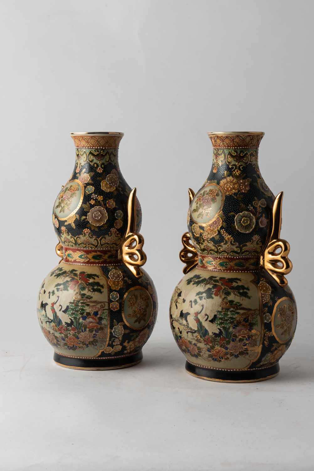 A PAIR OF SATSUMA VASES, H.38CM, LEONARD JOEL LOCAL DELIVERY SIZE: SMALL