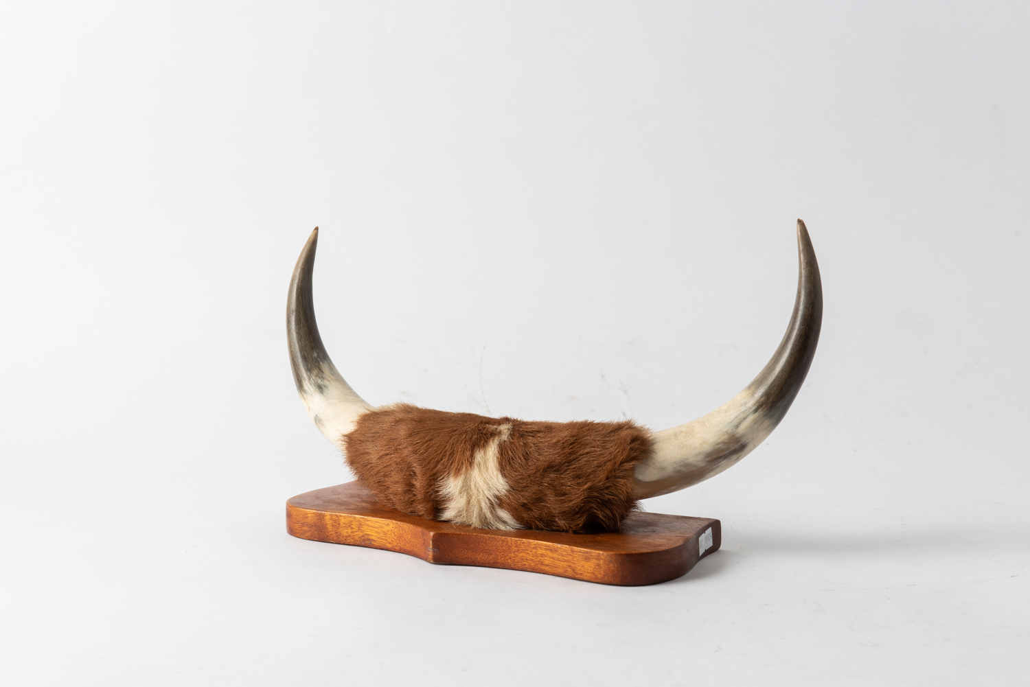 A MOUNTED PAIR OF TAXIDERMY HORNS, LEONARD JOEL LOCAL DELIVERY SIZE: SMALL