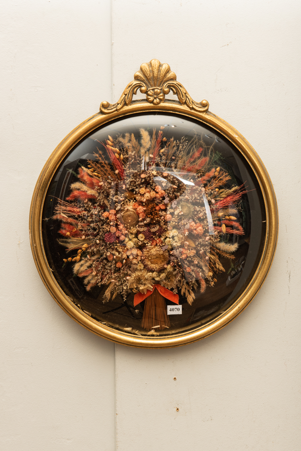 A GILT FRAMED FRENCH FLORAL ARRANGEMENT UNDER CURVED GLASS, 45 X 40CM, LEONARD JOEL LOCAL DELIVERY SIZE: SMALL