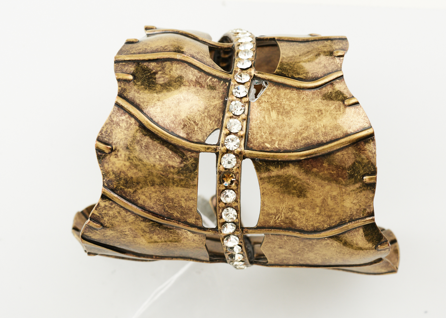 A LEAF DESIGN CUFF BANGLE IN BASE METAL WITH PASTE DETAILS
