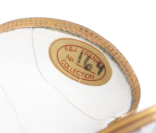 Light wear to the enamels, and to the gilt metal mounts. Enamel cracks and evidence of restoration to the interior of the lid (possibly to conceal cracks which occured during the enamelling process.