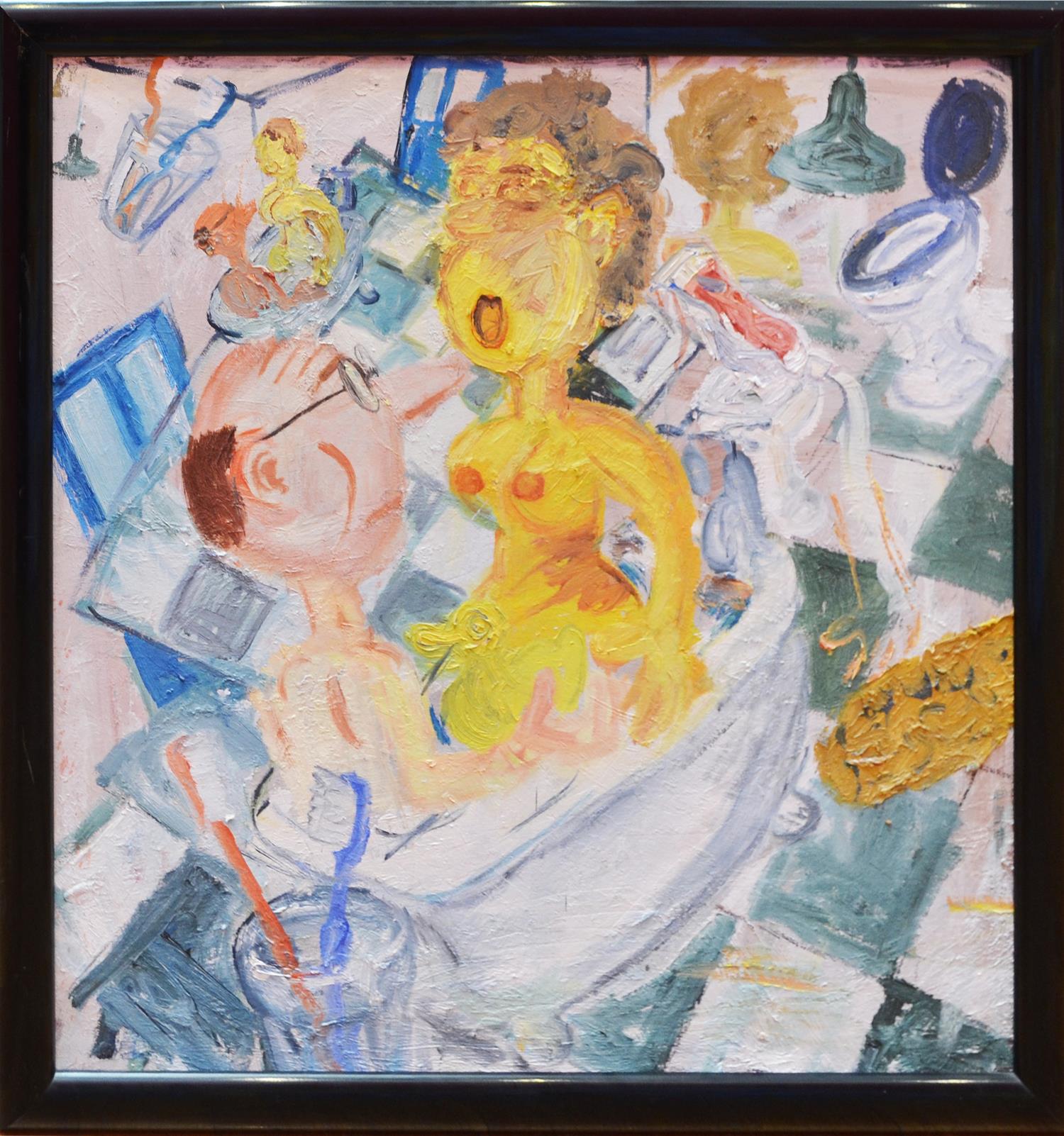 HENRY KONDRACKI, BATH NIGHT, OIL ON CANVAS, 78.5 X 74.5CM, FRAME SIZE: 87.5 X 84CM