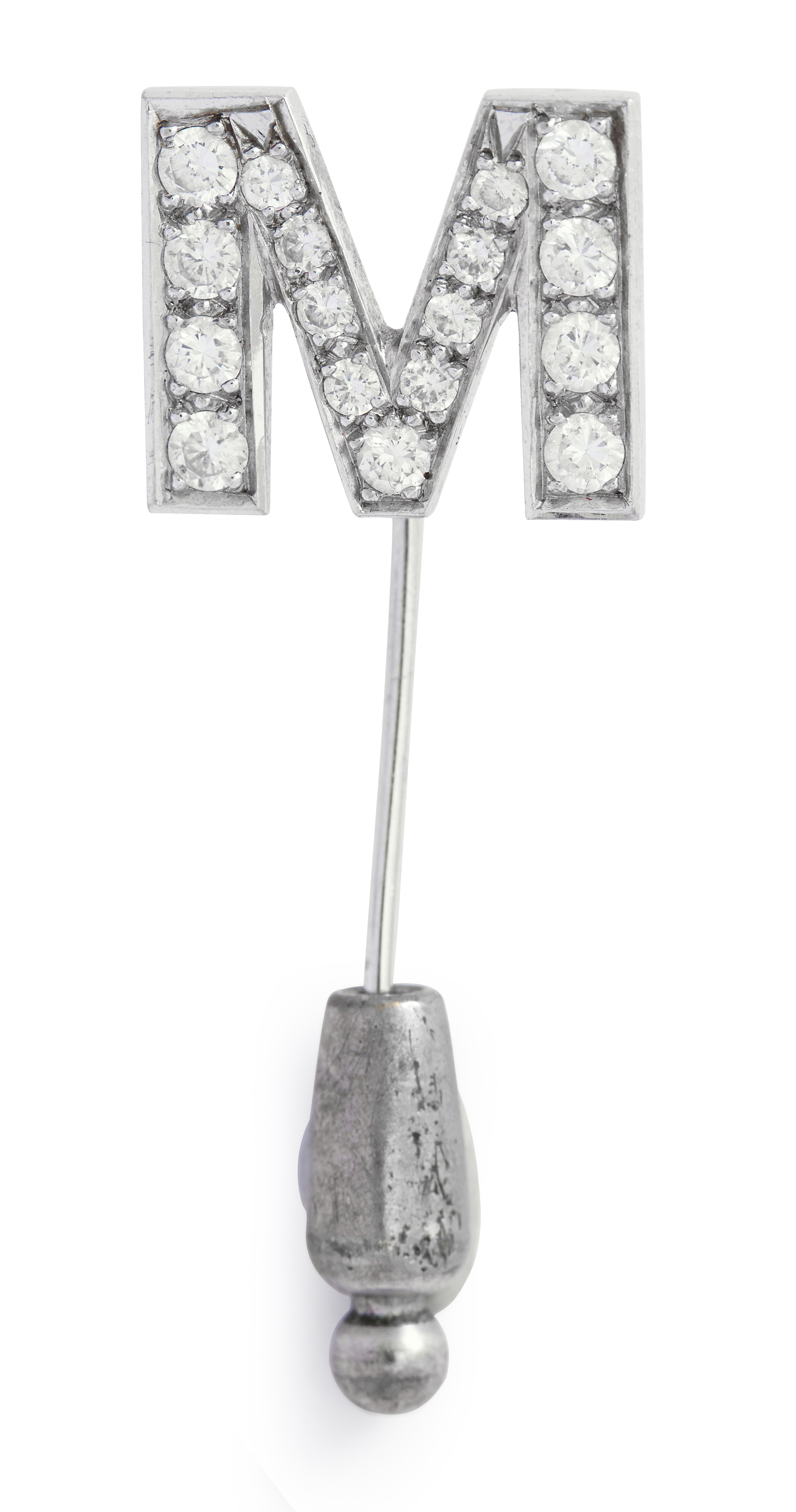 The initial 'M' is pavé-set with brilliant-cut diamonds, length approximately 16mm x 14mm.