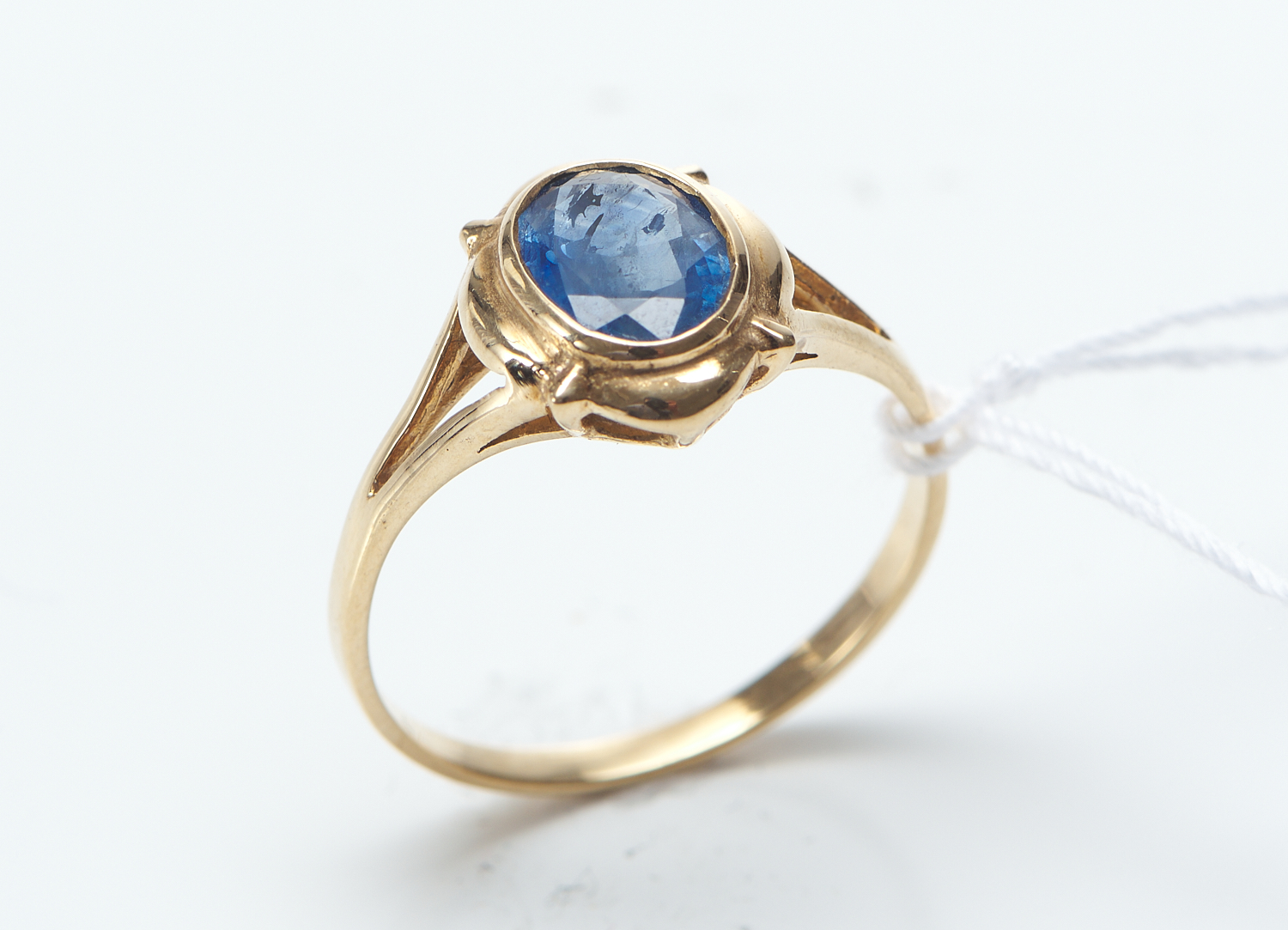 A SAPPHIRE RING IN 9CT GOLD, SIZE N, 1.7GMS