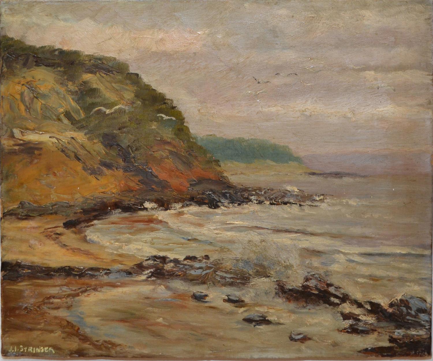 J. J. STRINGER, COASTAL SCENE, OIL ON CANVAS, 35.5 X 41CM, STRETCHED AND READY TO HANG, LEONARD JOEL DELIVERY SIZE: SMALL