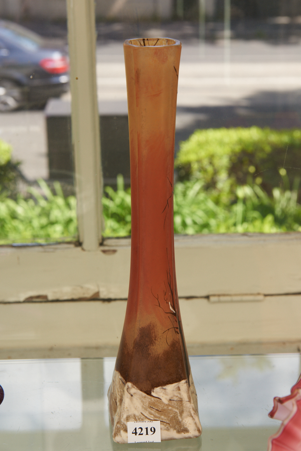 A 19TH CENTURY SIGNED FRENCH ENAMELLED LEGRAS GLASS VASE, 30 CM HIGH, LEONARD JOEL LOCAL DELIVERY SIZE: SMALL