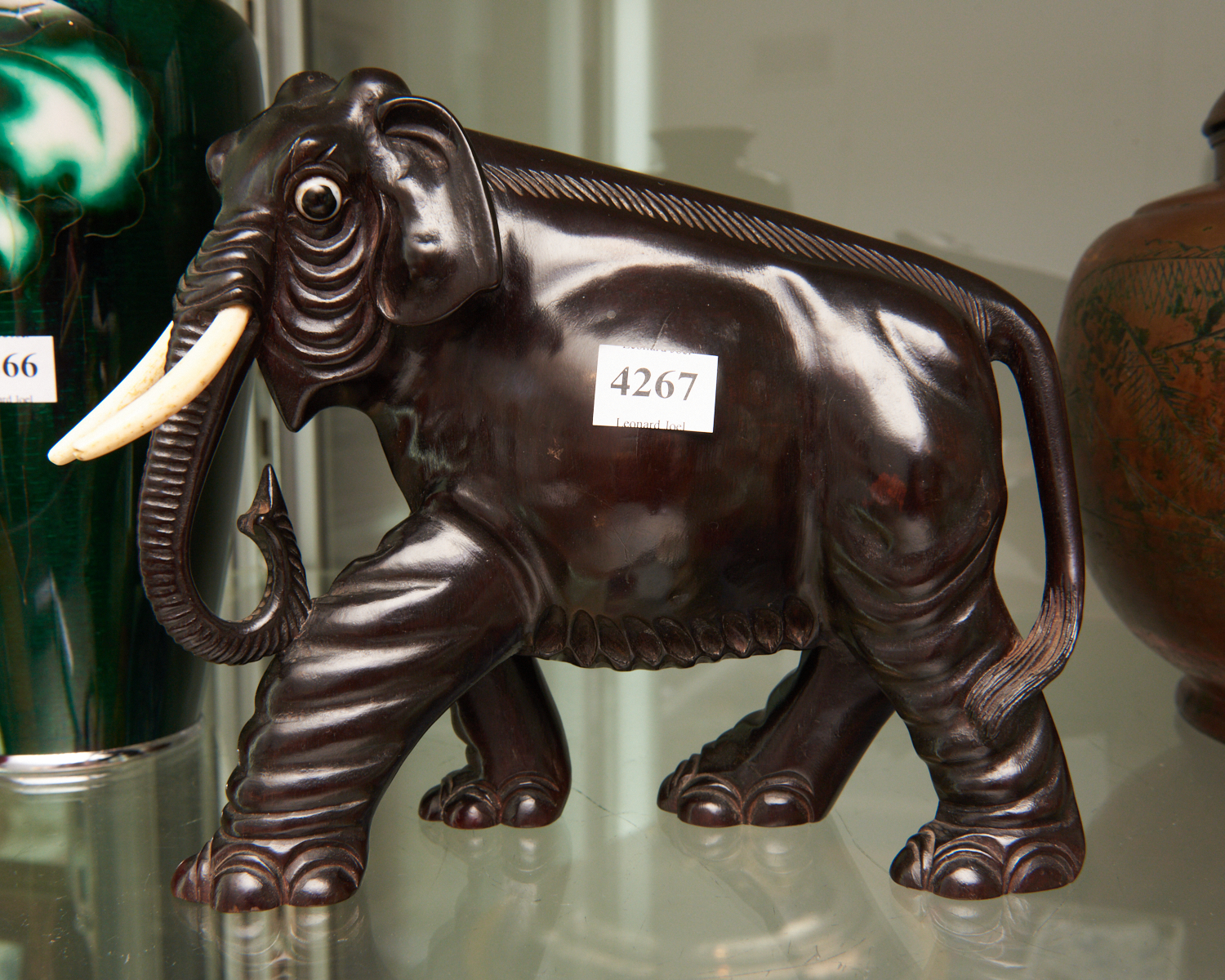 A C20TH CARVED WOOD BONE ELEPHANT, H.18CM, LEONARD JOEL LOCAL DELIVERY SIZE: SMALL