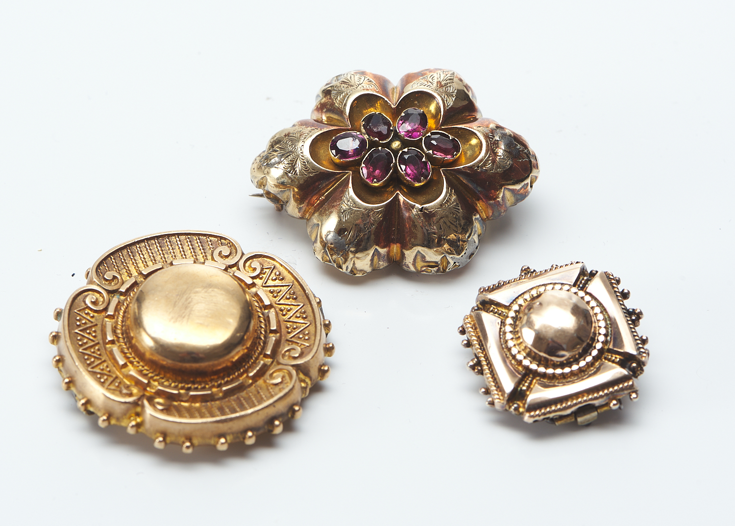 A COLLECTION OF THREE VICTORIAN GOLD LINED BROOCHES, A/F