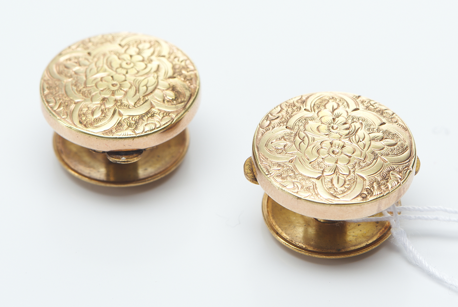A PAIR OF ENGRAVED CUFF BUTTONS IN GILT