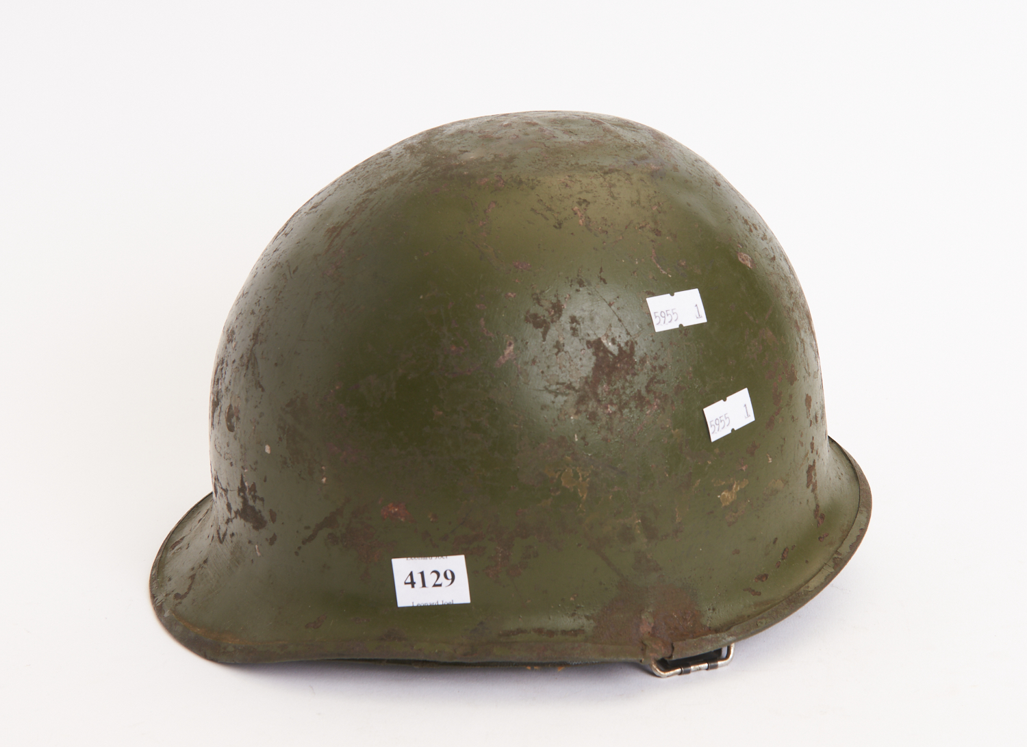 A WWII MILITARY HELMET, W.28CM, LEONARD JOEL LOCAL DELIVERY SIZE: SMALL