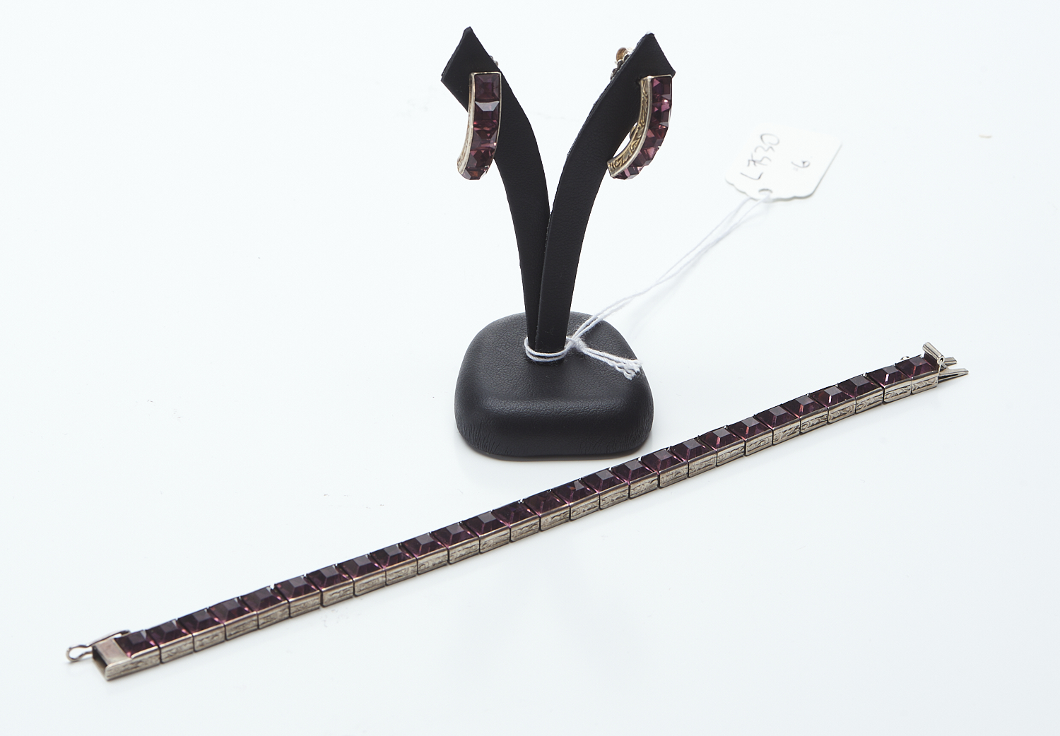 A PASTE LINE BRACELET TOGETHER WITH A PAIR OF CONFORMING EARRINGS, IN STERLING SILVER