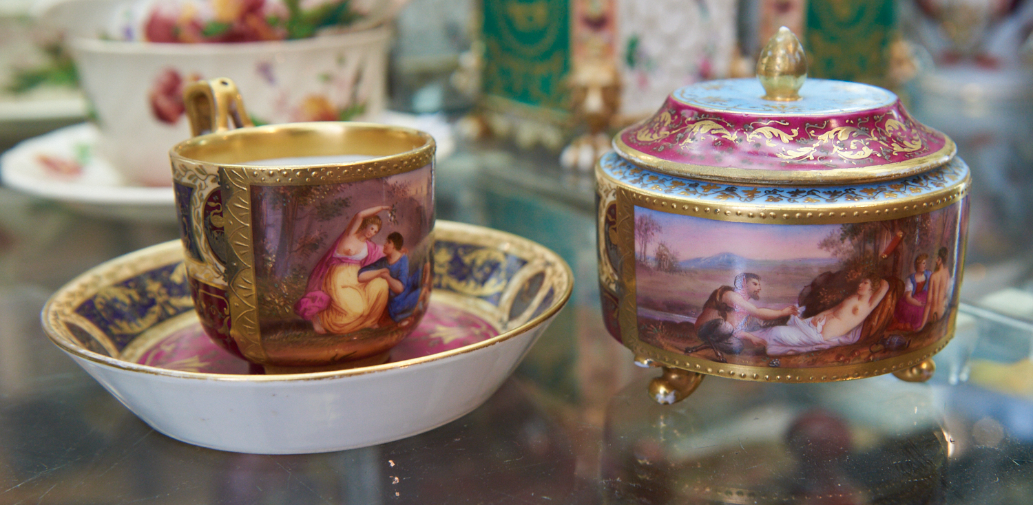 A ROYAL VIENNA LIDDED BOWL AND CUP AND SAUCER, LEONARD JOEL LOCAL DELIVERY SIZE: SMALL