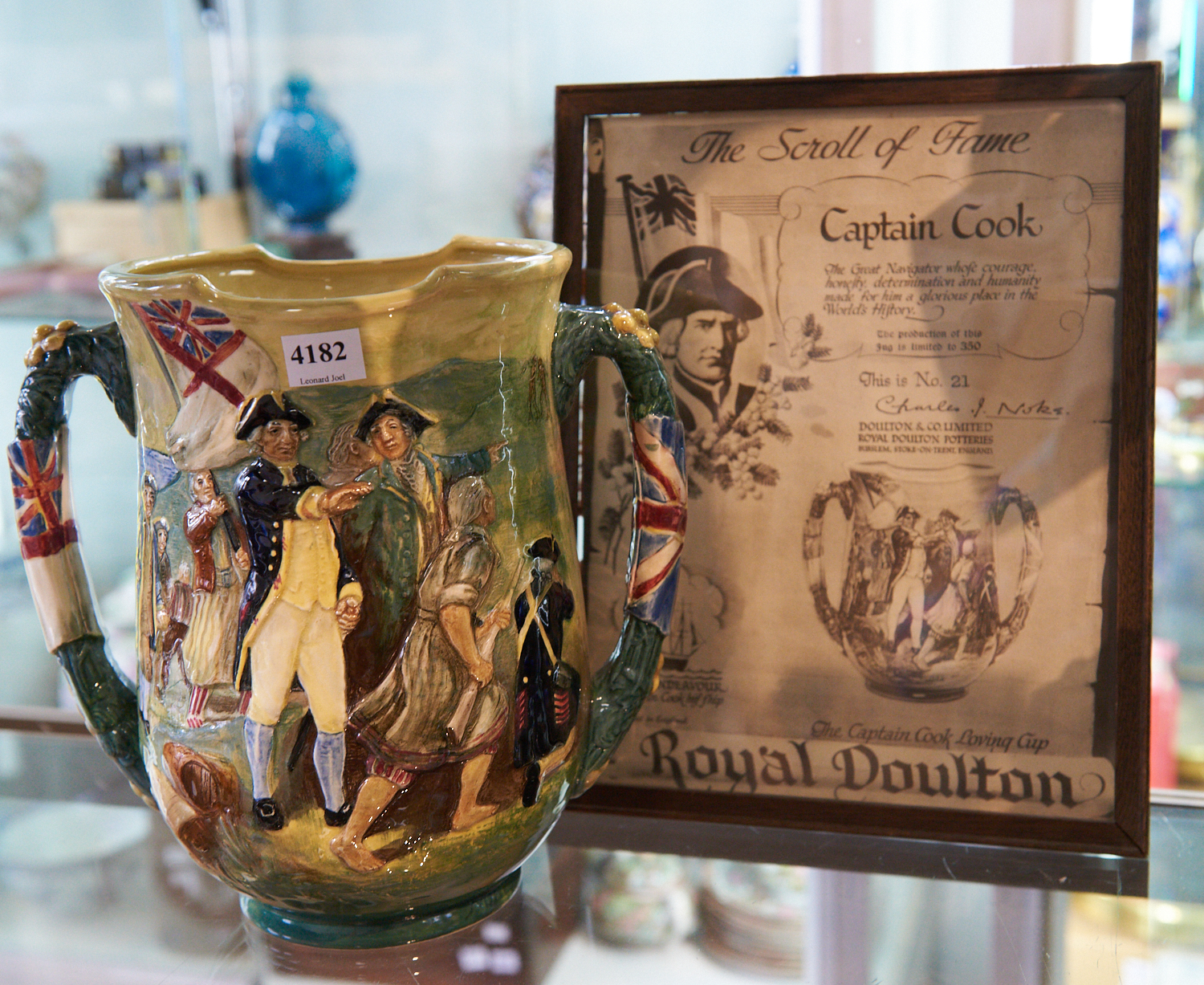 ROYAL DOULTON LOVING CUP CAPTAIN COOK. LIMITED EDITION 21 OF 350 H.25CM BY CHARLES NOKE & HARRY FENTON, LEONARD JOEL LOCAL DELIVERY SIZE: SMALL