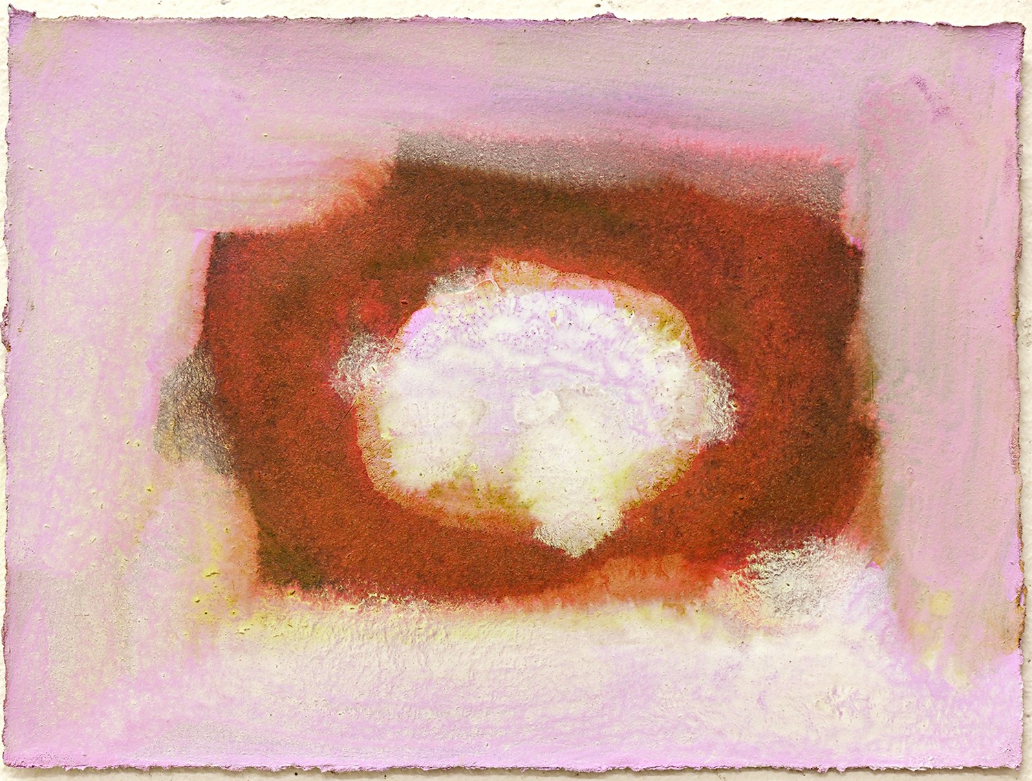 The gestural repetition of floating circular forms characterises Fulli Andrinopoulos' work. Her small-scale paintings are executed in a variety of media including ink, gouache, acrylic and pastel. Each contains dense layers of rich pigment and chance painterly occurrences, within their patina, bleeds, lines and transparencies.