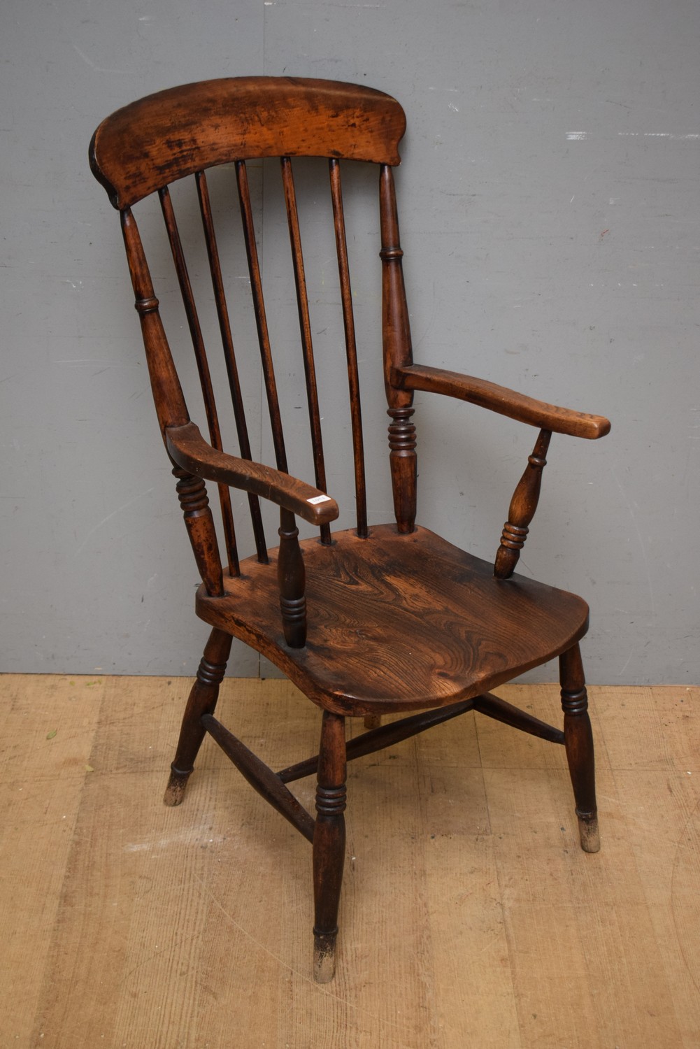 A SPINDLE HIGHBACK WOOODEN ARM CHAIR (A/F) (110H x 52W x 65D CM) (LEONARD JOEL DELIVERY SIZE: LARGE)