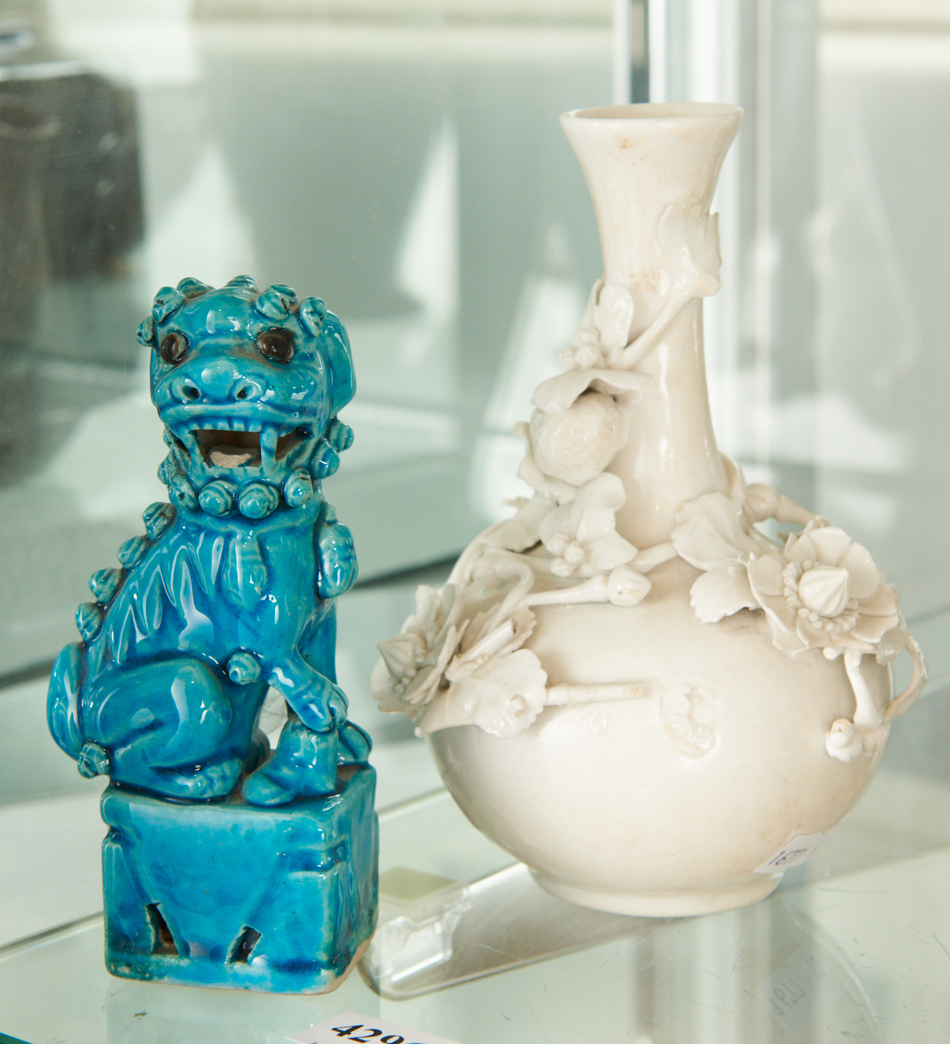 DERBY PORCELAIN VASE, AND BLUE FO DOG (FAULTS), LEONARD JOEL LOCAL DELIVERY SIZE: SMALL