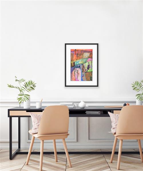The Nutcracker is an outstanding example of Emily Dober's commitment to the art form of dance as subject matter. The classical production is portrayed here with a soft elegance. It appears to capture a complex moment in the narrative of the production with figures placed in various positions on the 'stage'.